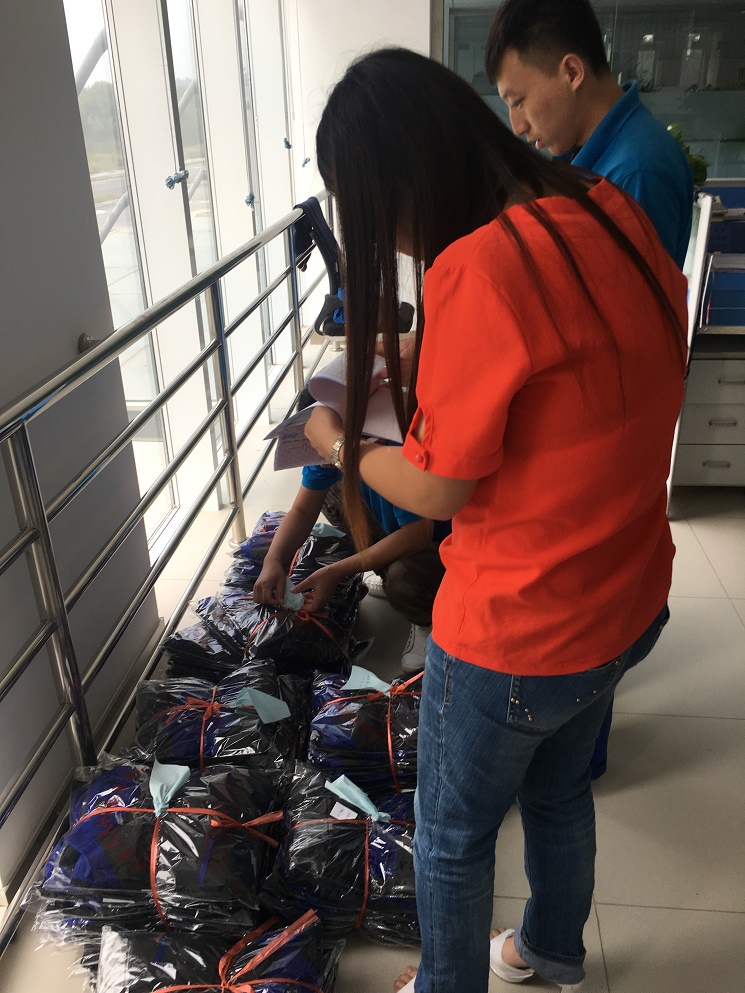 ”关键词找到了我们工服美,经过和我们的销售经理进行沟通,决定从我们家定制。下图是给北控水务送货的图片。
