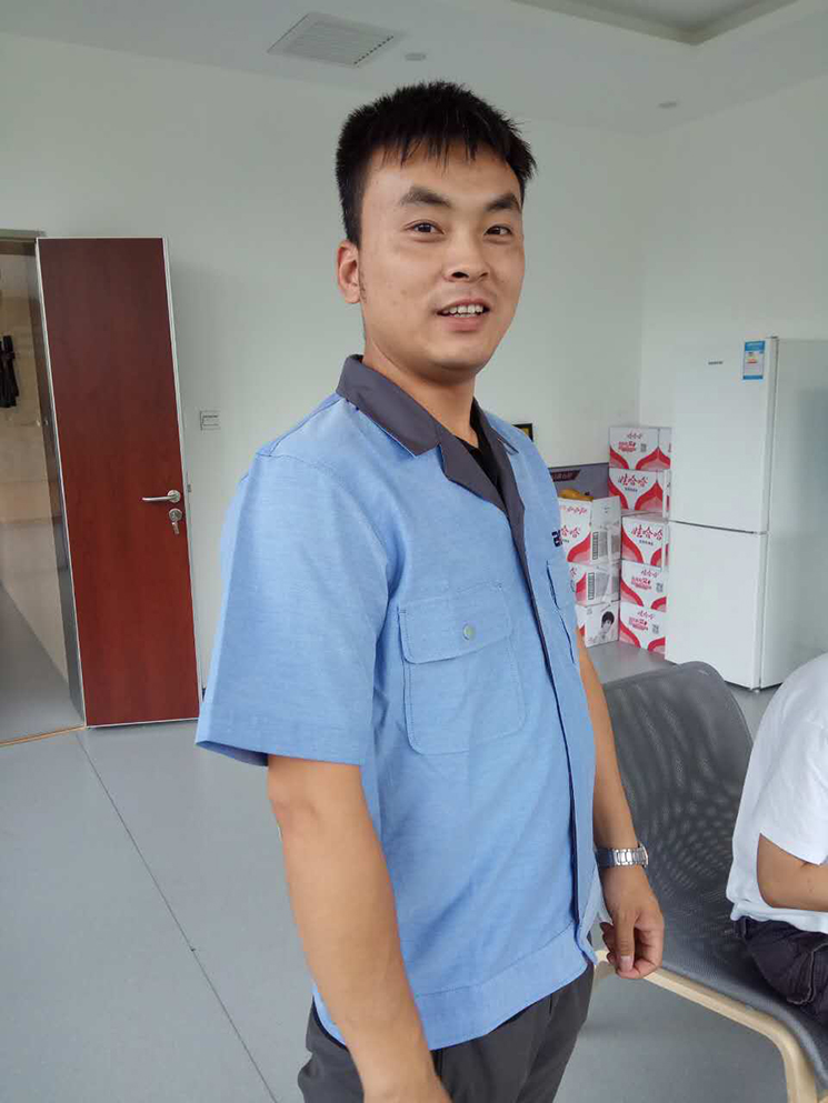 做工作服在网上找到了我们工服美,下图为配天技术和我们的销售洽谈工服试衣过程。